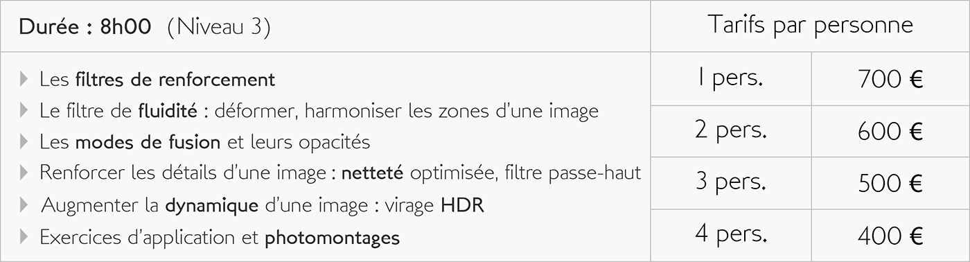 Concernant le module « Portrait », il est nécessaire de venir avec un modèle afin de tirer le maximum de cette formation.